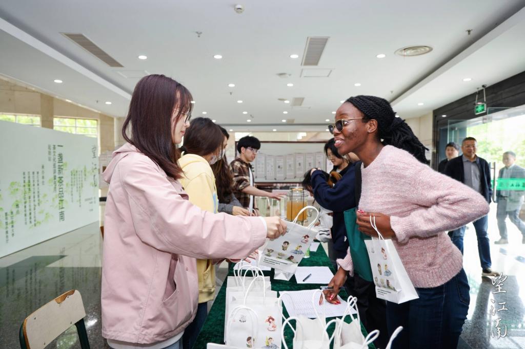 浙江文艺出版社、龙冠茶叶有限公司、《江南》杂志社和茶学院分别向学校捐赠了茶文化系列图书、“望江南”茶书礼盒、中国民间文学集成浙江卷套书等,不仅丰富了校园知识书库,更进一步推动了“书香校园”文化建设。开幕式上,茶文化大学生创业团队中国茶谣与王旭烽教授联名新茶饮产品——“茶人四部曲”系列也得到了重磅推介。