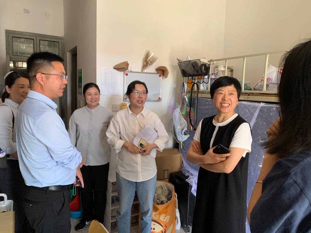 5月16日,校党委副书记施美红走访文法学院学生寝室,学工部及文法学院相关负责人陪同走访。