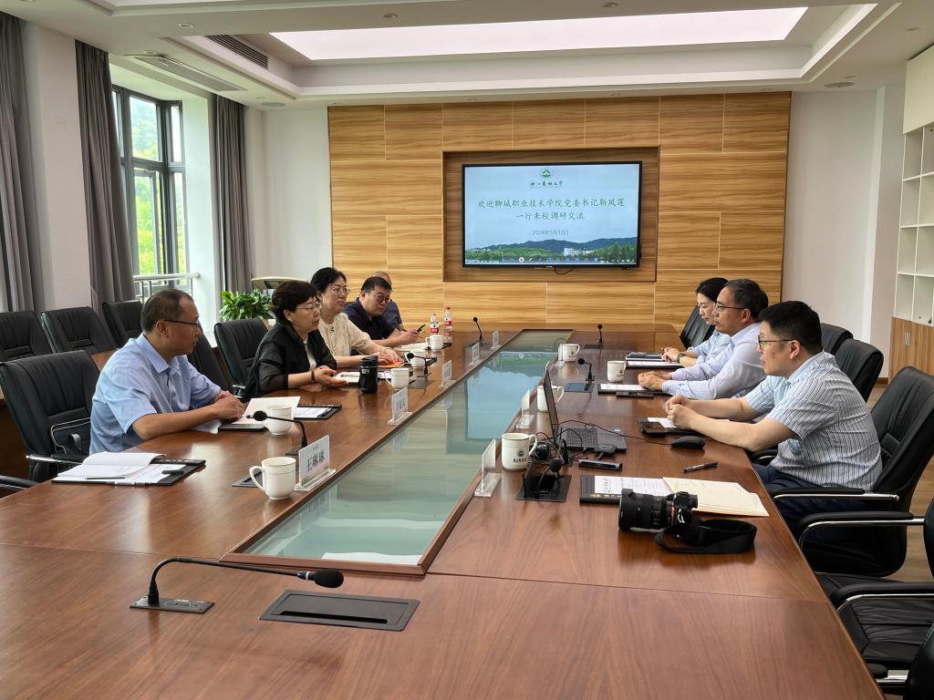5月30日,聊城职业技术学院党委书记靳凤莲一行来校调研交流,副校长胡祖吉陪同调研并主持座谈会。