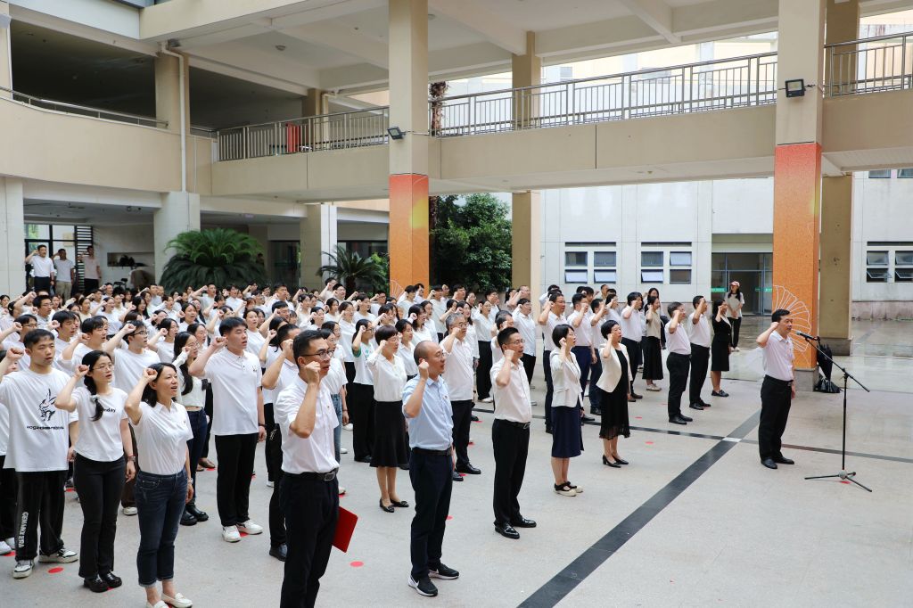 6月27日,学校举行“七一”入党宣誓仪式。校党委副书记施美红,校党委委员、宣传部部长、教师工作部部长倪建均出席入党宣誓仪式。仪式由组织部部长董杜斌主持。