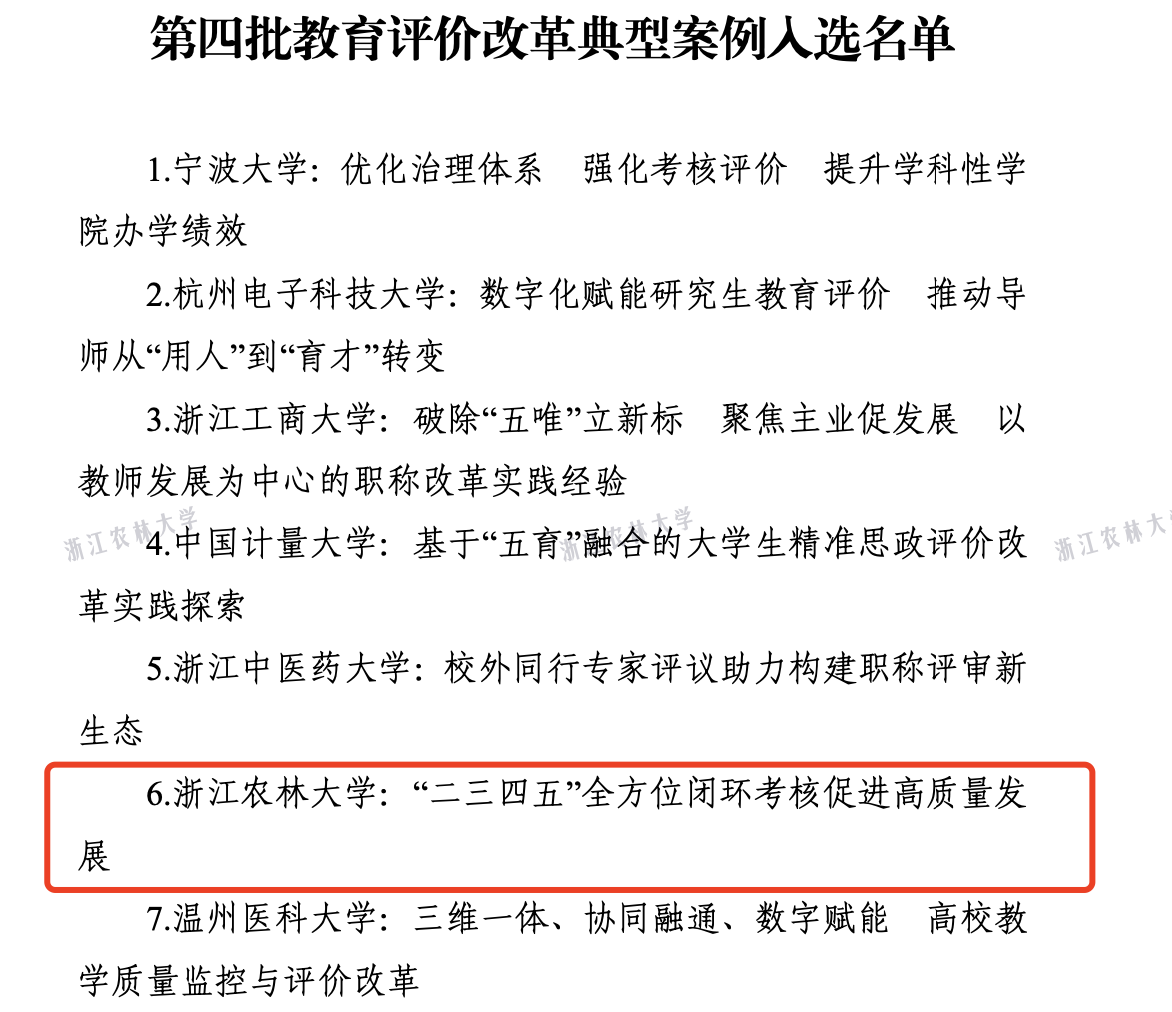 接下来,学校将结合学习贯彻党的二十届三中全会精神,持续探索高等院校评价管理体制机制,深入研究凝练本校特色亮点,努力打造具有浙农林大辨识度和影响力的教育评价改革品牌。
