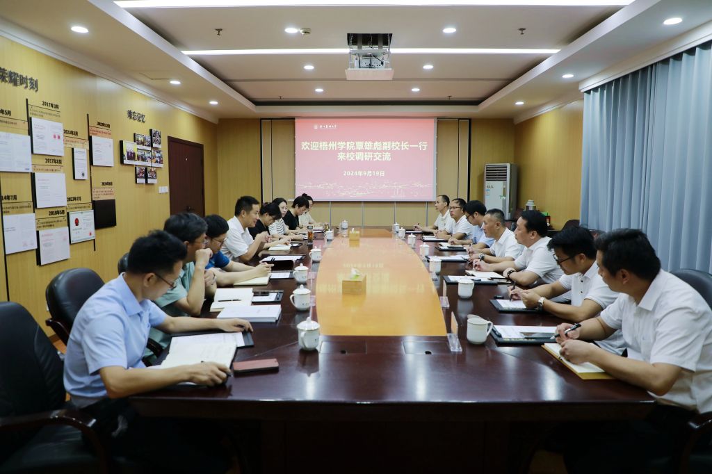 9月19日,梧州学院副校长覃雄彪带队来校调研。BEAT365副校长徐爱俊出席座谈会。