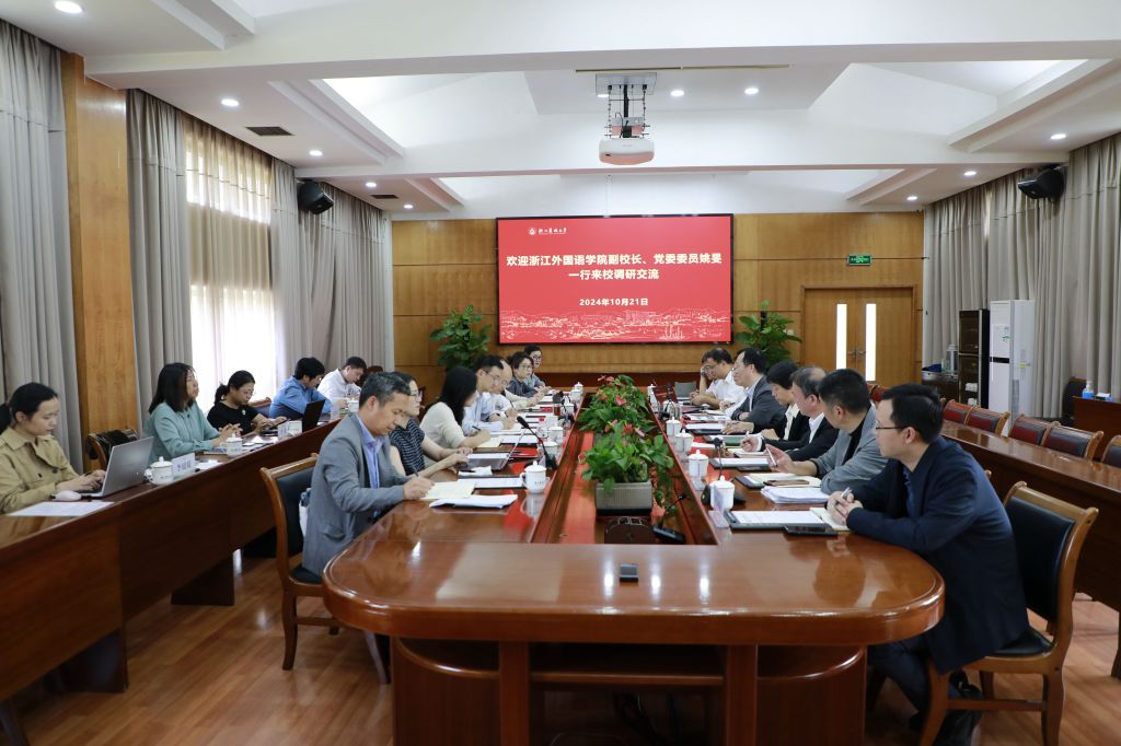10月21日,浙江外国语学院副校长姚旻一行来校调研交流。校党委副书记倪建均出席并主持调研座谈会。