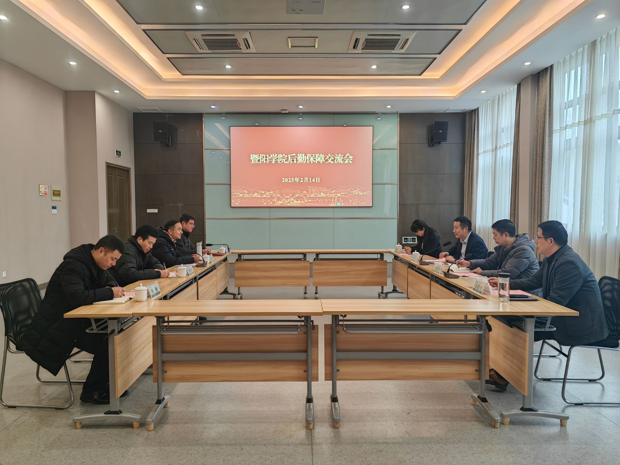 2月14日,暨阳学院后勤保障工作交流会在衣锦校区召开,副校长徐爱俊出席并主持会议,暨阳学院及后勤中心负责人参加座谈交流。