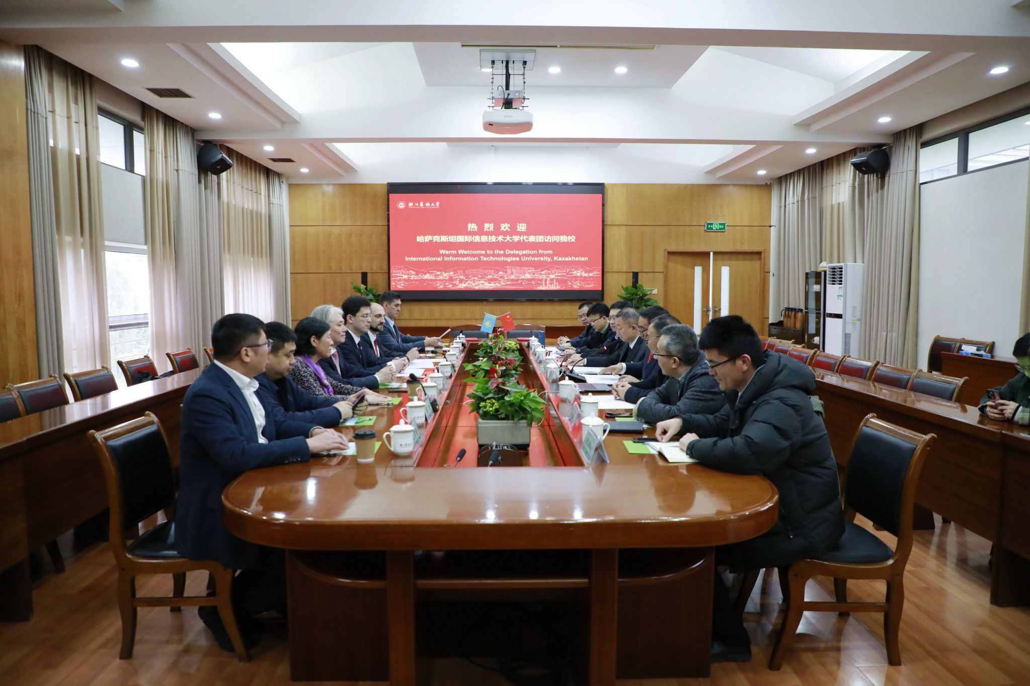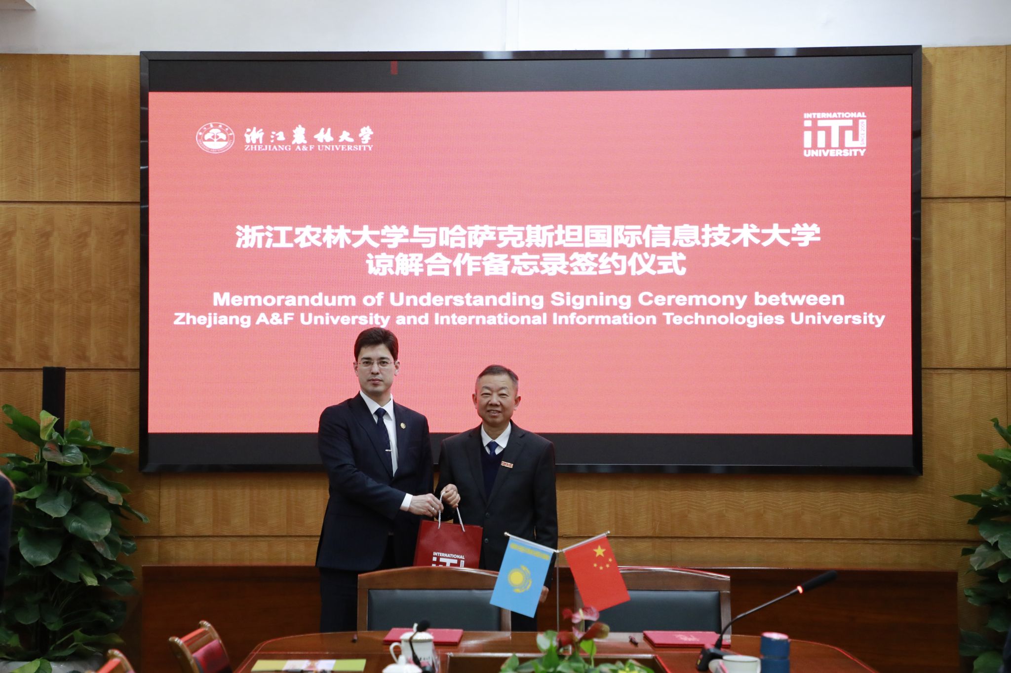 阿西尔别克简要介绍了国际信息技术大学的办学特色,以及学校在信息技术领域的人才培养和技术创新方面取得的突出成绩。他强调,学校高度重视国际化发展,正在积极拓展与亚洲高校的合作网络,期待通过此次交流与浙农林大建立紧密的伙伴关系,在师生交流、科研合作等领域开展务实合作,促进知识共享,推动技术创新,共同为全球信息技术发展贡献力量。