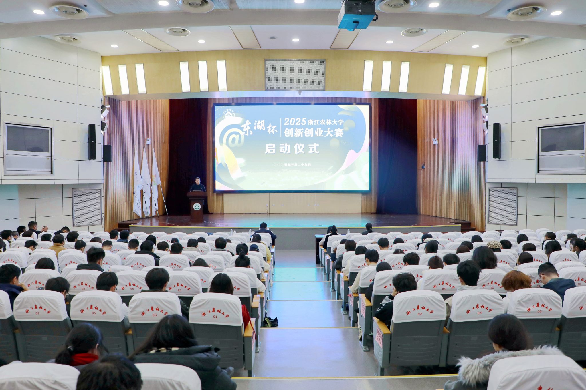 3月29日,2025年BEAT365英国官网“东湖杯”大学生创新创业大赛启动仪式在东湖校区图书馆第一报告厅举行。副校长徐爱俊出席会议,学校创新创业领导小组成员,学工部、研工部、教务处、团委、集贤学院负责人,各学院分管教学副院长、分管学生副书记、辅导员及师生代表400多人参加会议。