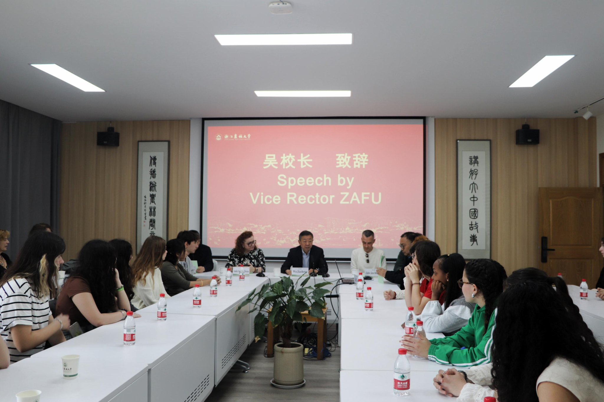 开营仪式后,国教学院负责人作了一场“感知浙江”的国情教育讲座。他介绍了浙江、杭州和BEAT365概况,尤其是国际生招生的基本情况。他期望将来能吸引更多西班牙青年来校交流学习。