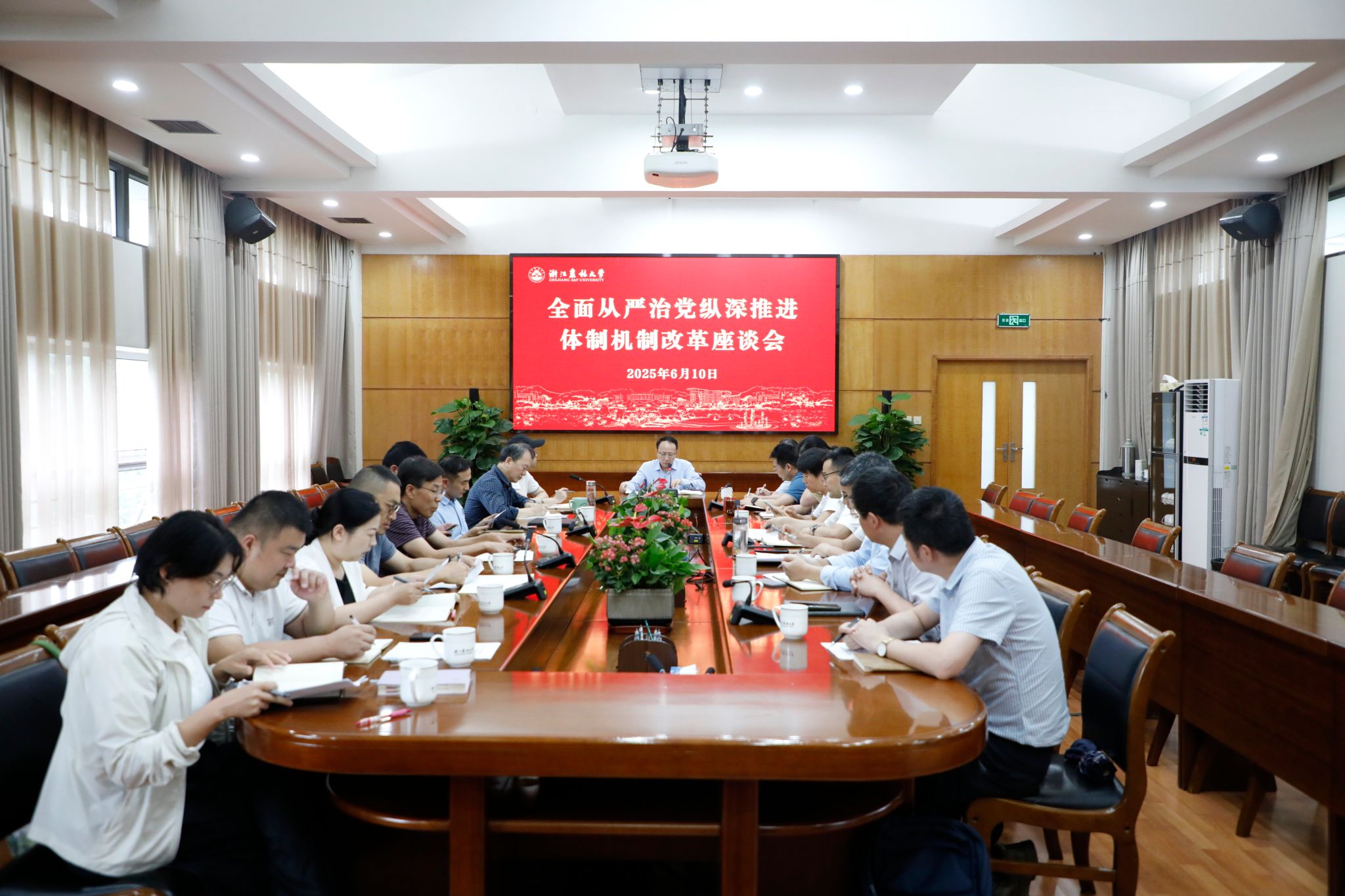 6月10日,学校全面从严治党纵深推进体制机制改革座谈会召开。校纪委书记包松永主持座谈会并讲话,林生院、环资院、化材学院、后勤中心等党委负责人,园林学院、经管学院、文法学院、动科动医学院、艺术学院等纪委负责人,机关部分部门负责人参加了座谈会。