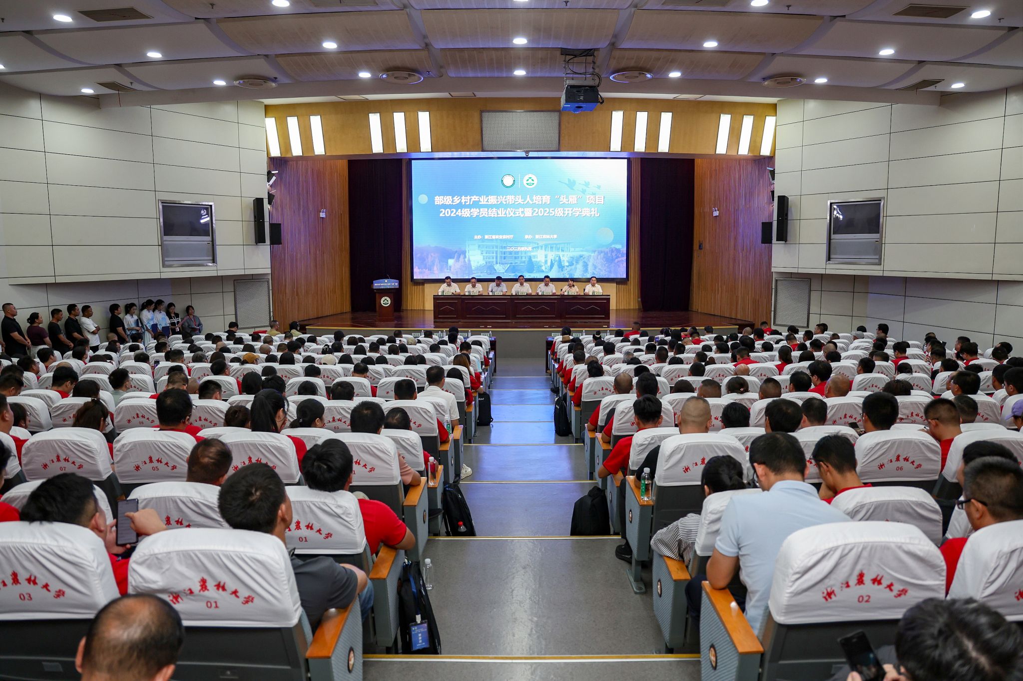 本次活动是对2024级“头雁”培育成果的全面检阅,也是为2025级新学员开启乡村振兴学习征程的重要动员。继续教育学院、共富学院负责人,“头雁”项目专业导师、创业导师、金融导师代表,2024级学员代表、2025级全体学员及多家新闻媒体记者共计600余人参加。