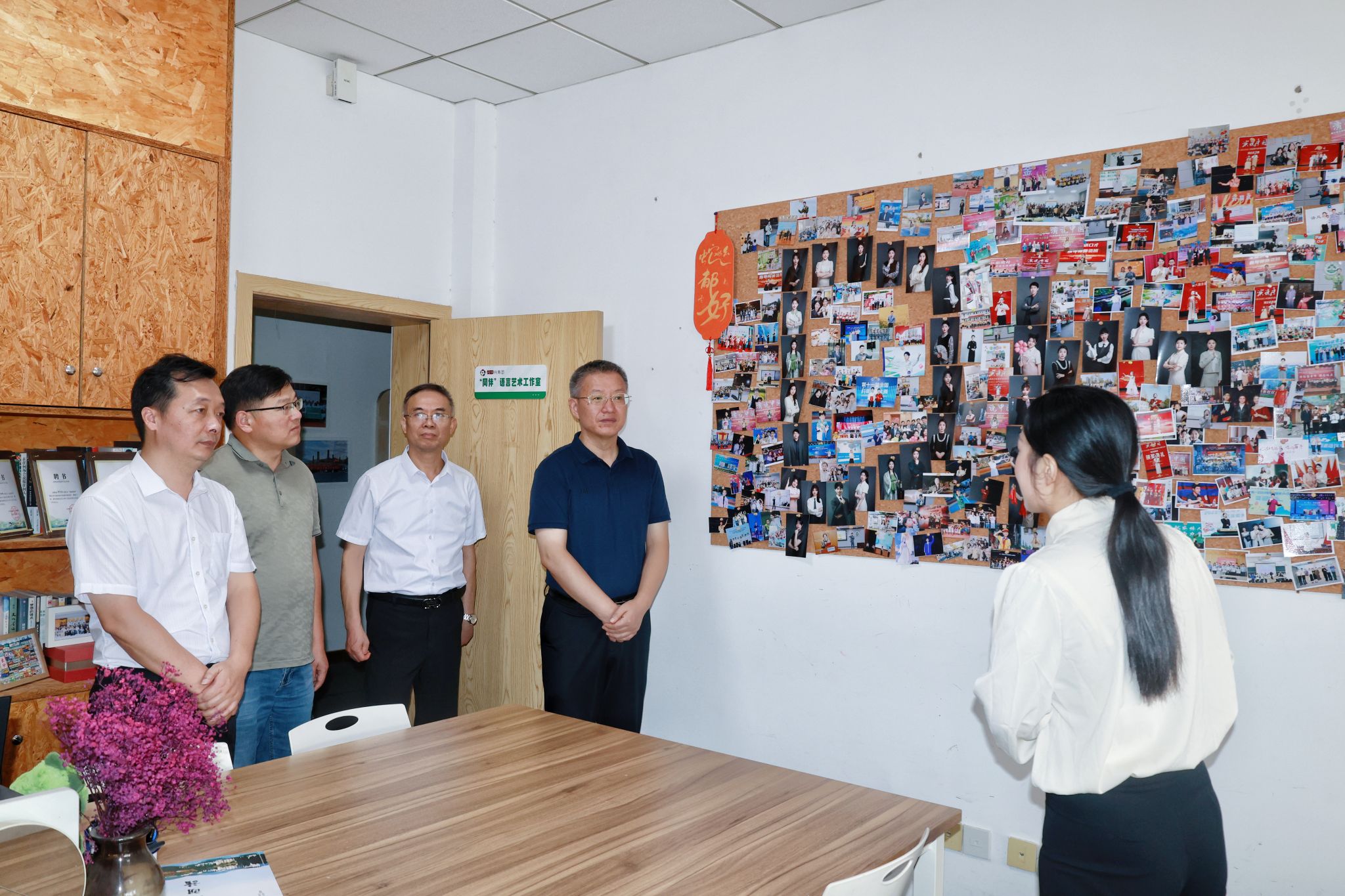 曹付忠一行还实地参观了青年“同伴”工作室,团委负责人就青年“同伴”工作室的成立背景、功能定位及发展历程作了简要介绍。