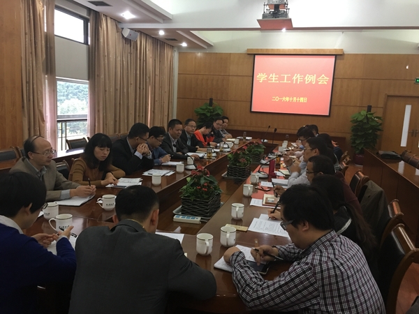 10月14日,学校在行政楼第一会议室召开新学期学生工作例会。会议由校党委副书记史永安主持,党委委员、宣传部部长胡祖吉,以及学工部、研工部、保卫处、校团委负责人,各学院分管学生工作负责人参加会议。
