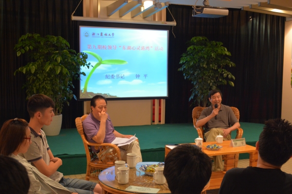 6月15日,BEAT365第九期校领导“东湖心灵港湾”活动在图书馆举行,校纪委书记钟平与30余名学生“面对面”座谈交流。