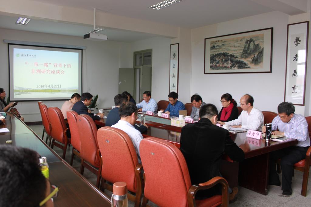 近日,由非洲农林研究院、法政学院和外语学院联合主办的“一带一路”背景下的非洲研究座谈会举行。副校长金佩华、非洲农林研究院、法政学院、外语学院负责人及师生参加座谈会。《西亚非洲》编辑部主任安春英一行参加。