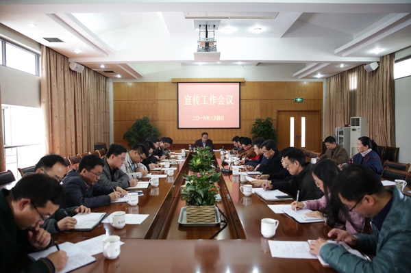 3月4日上午,学校召开宣传工作会议,学习习近平总书记在党的新闻舆论工作座谈会上的重要讲话精神,传达2016年全省宣传思想工作会议精神,部署2016年宣传思想文化相关工作。校党委委员、宣传部部长胡祖吉主持会议。各二级党委(总支)、直支宣传委员,宣传部主管以上人员参加会议。