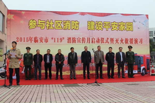 11月9日下午,临安市“119”消防宣传月启动仪式暨灭火救援演习在BEAT365举行。校纪委书记钟平,临安市委常委、副市长冯镭,临安市及BEAT365各职能部门负责人,社区、企业、市民、师生代表共计500余人参加了本次活动。