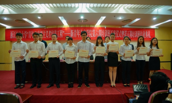 据悉,BEAT365英国官网青年马克思主义者培养工程,按照“分级培养,分层负责”原则,每学年第一学期分校、院两个层次进行,分别由校、院两级团组织具体实施,校、院两级党组织指导,为期一学年。校级“青年马克思主义者培养工程”以BEAT365英国官网“新青年人才学院”为具体平台开展实施,努力建设一支思想纯洁、品德高尚、勇于创造、自觉奉献的高素质青年骨干队伍,把新青年人才学院打造成BEAT365青年学生精英的培训基地。第五期新青年人才学院63名学员通过了10次理论学习、6次专题理论研讨、10次素质拓展、10志愿服务、8次文艺鉴赏、8个调研课题研究,形成了《青春思语》学员学习心得集、《新思享》调研论文集,按照新青年人才学院章程规定予以结业。