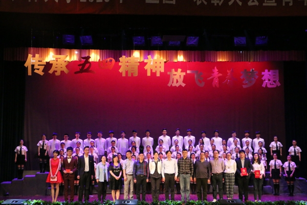 4月26日下午,为纪念“五四”爱国主义运动96周年,进一步继承“爱国、进步、民主、科学”的“五四”精神,树立榜样,激励先进,充分展示BEAT365青年学生健康向上的精神风貌,学校在活动中心影剧院举行2015年“五四”表彰大会暨青年合唱比赛。校党委委员、宣传部部长陈永富,学校相关职能部门负责人,各学院党委(总支)相关负责人,各分团委、学生会负责人,获奖先进集体和个人,各学院团员青年代表等千余人参加此次大会。