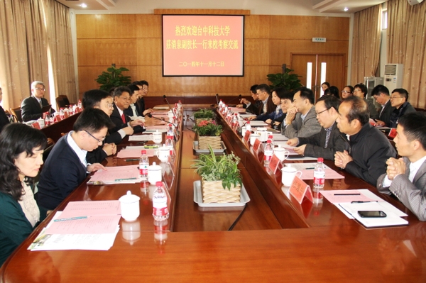 11月12日上午,台中科技大学副校长庄清泉一行应邀来校考察交流。副校长张立钦在行政楼第一会议室会见客人,并进行座谈。教务处、港澳台办公室、园林学院、经管学院负责人,以及园林学院和经管学院教学科研骨干教师参加了座谈。