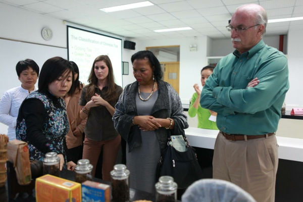 博大精深的中国茶文化越来越备受瞩目。美国客人访问了文化学院,对作为我国唯一的茶文化本科专业建设情况进行了详细了解,并与茶文化学院教师进行了交流,了解了“茶文化的渊源”“茶的健康保健功效”以及“中国茶品鉴”等相关知识。茶文化专业学生还为客人奉上了精彩的中国茶艺表演,展现了中国茶文化的魅力。