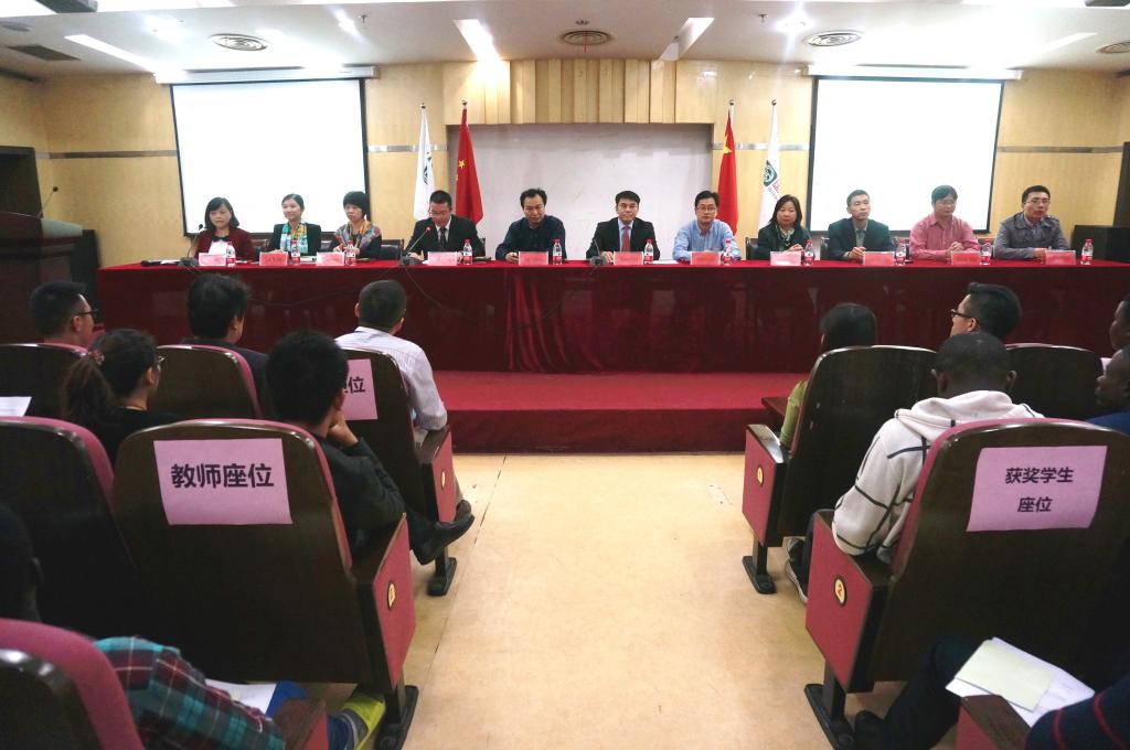 最后,张立钦等领导向20余名获得各项荣誉的留学生颁发奖学金,并进行了留学生与图书馆互赠图书的活动。