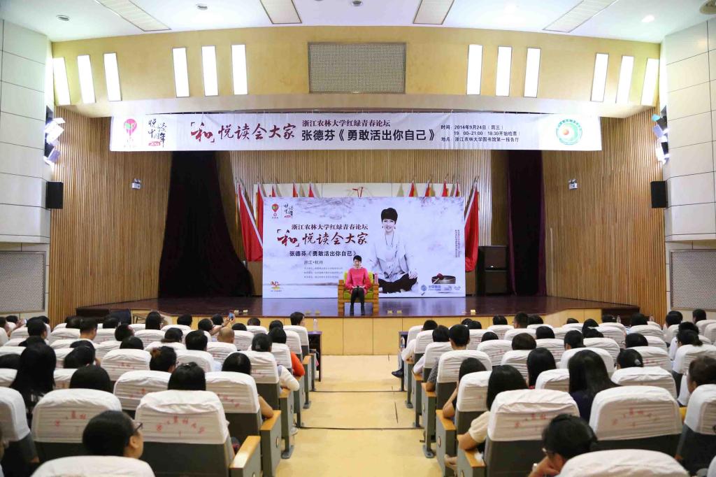 据悉,张德芬出版的《遇见未知的自己》一书,一上市便登上各大畅销书排行榜前列,至今销量超过200万册,后陆续著有《活出全新的自己》、《遇见心想事成的自己》、《重遇未知的自己:爱上生命中的不完美》、《心灵突破60问》《舍得让你爱的人受苦》,引领了很多人踏上身心灵成长的旅程,其作品被誉为华语圈最畅销的身心灵必读经典,系列作品销量已接近500万册。红绿青春论坛“悦读会大家”讲座每学年均在BEAT365定期举行,前期邀请了黄菡、金正昆等名家前来讲座,增加了大学生的阅读量,实现了知识的多元化。
