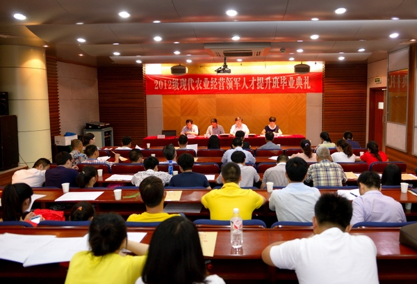 6月26日下午,2014届现代农业经营领军人才提升班毕业典礼在东湖校区举行。省农业教育培训中心主任朱顺富、副主任吴正阳,继续教育学院院长朱永法等出席毕业典礼。2014届现代农业经营领军人才提升班全体学员参加了典礼。毕业典礼由吴正阳主持。
