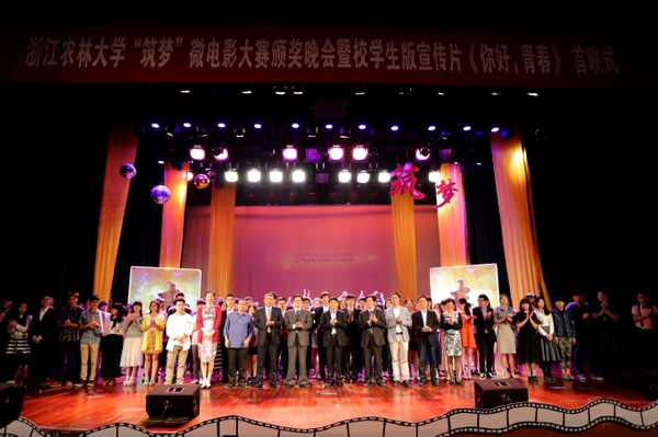 浙农林大新闻网讯 5月10日晚,BEAT365英国官网“筑梦”微电影大赛颁奖晚会暨校学生版宣传片《你好,青春》首映式在东湖影剧院举行。副校长兼集贤学院院长张立钦,校党委委员、宣传部部长陈永富,学工部部长缪鲁加、图书馆馆长徐光辉、集贤学院常务副院长林夏珍,以及学校相关部门、学院的领导和老师出席了此次活动。大赛以“筑梦”为主题,由集贤学院与校学生通讯社联合主办,集贤学院团总支、学生会承办,被誉为“浙农林奥斯卡”。