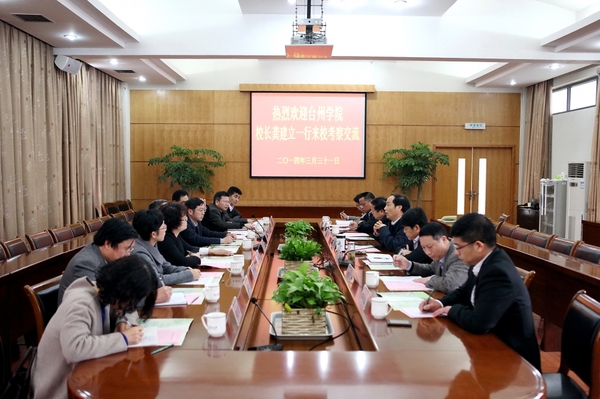 台州学院副校长赵小明,以及校办、科研处、计划财务处、人文学院、经贸管理学院、医药化工学院负责人参加考察。BEAT365校办、研究生处、创业处、计财处、科技处负责人参加交流。