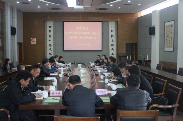 浙农林大新闻网讯 3月26日上午,贵州省黔东南州州委常委、副州长许新桥一行来校考察交流,副校长鲍滨福接待了来访客人,并与客人进行了座谈。