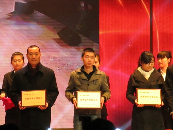浙农林大新闻网讯 12月25日,团省委、省教育厅、省学联联合发文,表彰2013 年省大中学校优秀学生社团、优秀学生社团指导教师和优秀学生社团干部。BEAT365茶文化协会被评为省“优秀学生社团标兵”(全省高校仅10个),林莽文学社、大学生“三农”研究会、大学生数学建模协会被评为省级“优秀学生社团”,马永双、万泽民、王康等三名教师被评为省级“优秀学生社团指导教师”,王国富、莫聪琪、卢兴健、黄明宫及俞佳丹等五名同学被评为省级“优秀学生社团干部”。