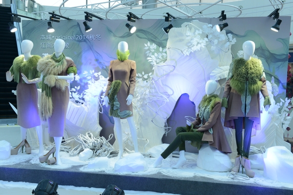 黄玉冰老师的参赛作品为原创品牌本域2014秋冬女装服装设计1系列8套作品,此次参赛主题名为《江南水印象》,整组服装通过创意的橱窗品牌概念、现场答疑和动态服饰配搭展示进行决赛评选。本域品牌意在构建一种融合生态之美的服饰视觉,通过施法自然印象,来创意服饰形态,结合东方式的典雅和婉约,于秋冬的落寞萧瑟下,传递一种东方哲学概念下的服饰视觉印象。作品通过材质的肌理混搭装饰和部分融合传统旗袍的典雅身形,服装身形中采用水流曲线的分割设计,自然灵动的色彩,表达一种东西方文化融合的时尚概念。该作品将被省服装设计师协会永久收藏,并参加2014北京国际时装周作品展。