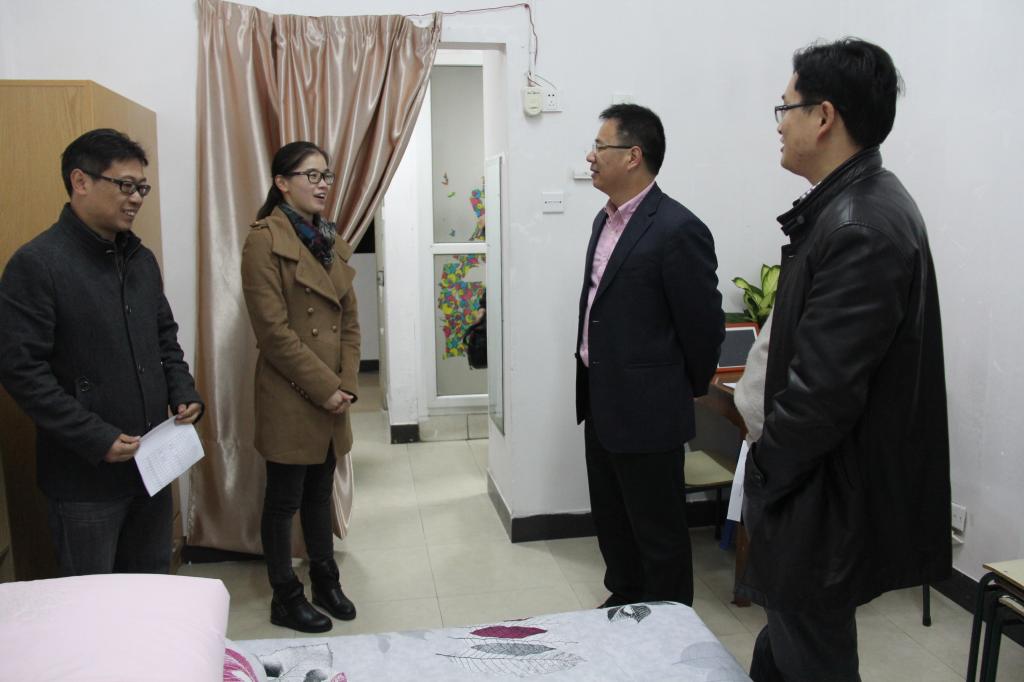 11月25日晚,校党委副书记余杰在学工部、公管处相关负责人陪同下走访了入住学生公寓辅导员寝室。