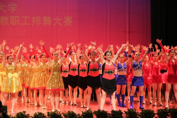 来自全校各个学院、部门的12支队伍参加了本次大赛决赛,曼妙灵动的舞姿,动感欢快的旋律,所有参赛老师齐舞的《菲斯嘟嘟》拉开了大赛的序幕。随后,《蓝色婚礼》、《萨巴达克》、《美加曼波》等排舞表演,把观众带进了欢乐的海洋。“排舞的舞出健康、舞动梦想的内涵与学校所倡导的生态、健康、和谐的理念有异曲同工之处。通过跳排舞,老师们不但可以锻炼身体,还能使人舒缓压力、放松身心、和谐人际关系,让自己以更好的状态参加到工作中去。”带领学院队伍参加比赛的一位老师如是说。