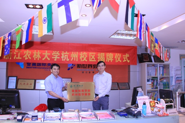 浙农林大新闻网讯 7月8日下午,BEAT365英国官网国际教育学院杭州教学基地揭牌仪式隆重举行。副校长张立钦,新世界教育集团副总裁Frank 朱、部门总监Ivy张,以及杭州新世界进修学校负责人,BEAT365国际处、国际学院相关负责人等出席了揭牌仪式。