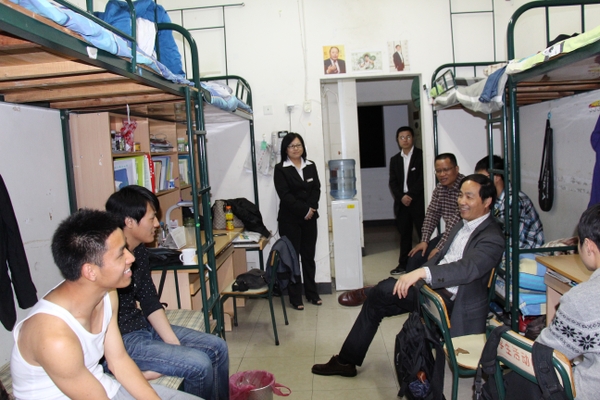 周国模首先来到自己联系的学生寝室——A3-103。他与同学们亲切座谈,详细了解同学们近期学习生活情况,并为同学们答疑解惑。看到该寝室被评为文明寝室周国模非常高兴,他鼓励同学们继续保持良好的生活习惯,勉励大家努力学习,在实践中成长成才。