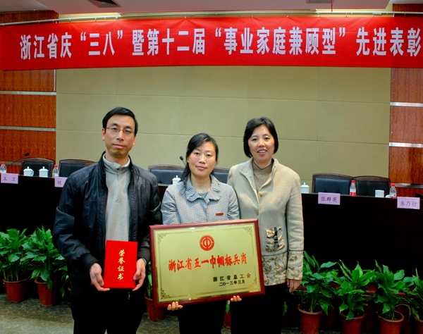 会议表彰了第十二届“事业家庭兼顾型”先进个人和浙江省工会先进女职工组织、先进个人等先进。BEAT365外国语学院荣获浙江省“五一巾帼标兵岗”称号;赵丽华、曾立新两位教师荣获2011-2012年度浙江省“事业家庭兼顾型”先进个人称号。