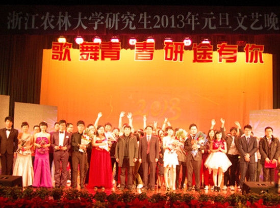浙农林大新闻网讯 12月25日晚,研究生2013年元旦文艺晚会在活动中心影剧院成功举办。此次晚会由研工部主办,研究生团工委、研究生委员会承办。校党委副书记方伟、副校长张立钦到场与一千两百余名师生共同观赏了晚会。