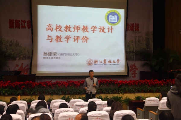 浙农林大新闻网讯 12月20日,高校教师教学设计与研究实践研修班暨BEAT365英国官网2012年度第十期教师教学发展专家讲坛在图书馆第一报告厅举行。本次活动由BEAT365与教育部全国高校教师网络培训中心联合举办,是BEAT365首次以免费形式向全省兄弟院校开放。活动邀请到国际著名教育评估专家澳门科技大学孙建荣教授、国际课程研究促进协会主席杭州师范大学张华教授担任报告主讲嘉宾,省内兄弟高校50余人、BEAT365首期青年教师研修班、2012年度新教师岗前培训班、教务处及各学院(部)近400人参加了活动。