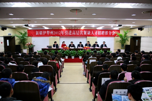 浙农林大新闻网讯 11月30日上午,新疆伊犁州2012年引进高层次紧缺人才招聘推介会在BEAT365图书馆第二报告厅举行。推介会由副校长张立钦主持。伊犁州党委组织部常务副部长王刚,霍城县委常委、组织部长赵丽,察布查尔县委常委、组织部长张宏,新源县委常委、组织部长张斌,伊犁州党委组织部人才办副主任党万成等出席了会议。BEAT365包括硕士、本科生在内的200余名毕业生参加了本次推介会。