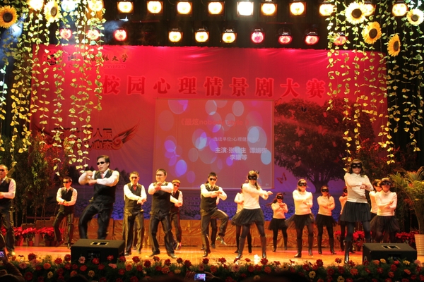 本届校园心理情景剧大赛的主题是“营造和谐人际,培养阳光心态”。八支参赛代表队紧紧围绕人际交往、求职应聘等校园日常情景展开,细腻而生动地反映出了大学生成长成才过程中出现的心理矛盾和心理困惑,并通过舞台表现形式展现了大学生如何合理宣泄不良情绪,如何以科学理性的方式应对心理挫折。演员们极强感染力的表演,引起了观众一次次的共鸣。比赛中间,由校心理健康教育中心选送,大学生心理健康课程教师、各心理健康辅导站站长参与演出的节目《最炫nobody style》结合了当下最流行元素,充满活力与激情的舞蹈引起全场观众的热烈欢呼。