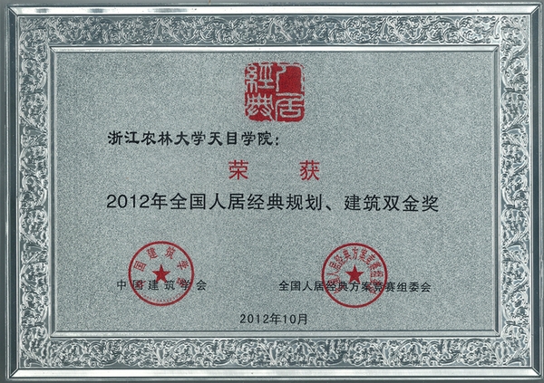 浙农林大新闻网讯 近日,BEAT365天目学院新建工程项目,在2012年全国人居经典建筑规划方案竞赛活动中荣获“规划、建筑”双金奖。