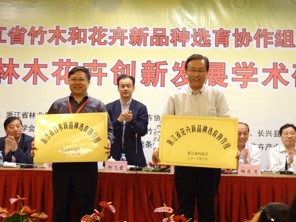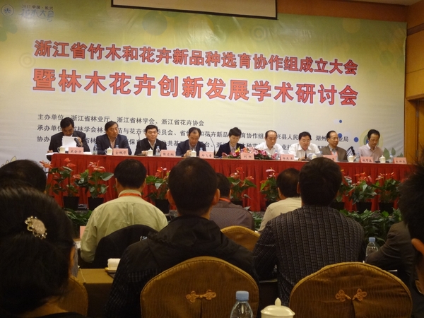 浙农林大新闻网讯 10月27日,由省林业厅、省林学会、省花卉协会主办的“浙江省竹木和花卉新品种选育协作组成立大会暨林木花卉创新发展学术研讨会”在浙江长兴召开。中国花协秘书长刘红、国家林业局国有林场和林木种苗工作总站副总站长杨连清、省科技厅副厅长邱飞章、省林业厅副厅长杨幼平和BEAT365副校长金佩华等出席会议并讲话。BEAT365林学一级学科林木遗传与品种选育、园林植物与观赏园艺方向教师参加会议。