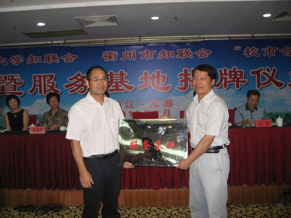 浙农林大新闻网讯 7月21日,校知联会与衢州市知联会“校市合作”签约暨服务基地揭牌仪式在衢州市龙游举行。衢州市政协副主席、市委统战部长马东泉,BEAT365党委副书记方伟,衢州市、龙游县党委统战部、知联会负责人,龙游县有关部门负责人,BEAT365党委统战部、校知联会主要成员及专家服务团成员出席了活动仪式。