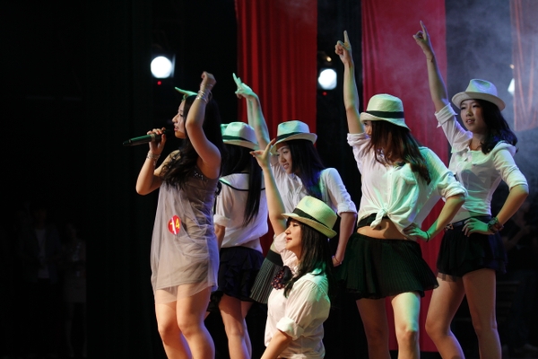 总决赛在选手们激情澎湃的开场舞中拉开序幕。15位选手纷纷登台献唱,尽情放歌,各展风采,带给现场观众独特的视听享受。台上,动感十足的《我开始摇滚了》,轻快动听的《明天》,民族风味的《英伦风》,热力四射的《Any man of Mine》等歌曲,博得了现场观众的热烈掌声。05-crew街舞工作室欢快活跃的舞蹈《Amazing girl》更是将全场氛围推向高潮。台下,荧光棒随节奏欢快舞动,与台上的耀眼交相辉映;掌声、欢呼声、呐喊声随着选手的演唱此起彼伏。