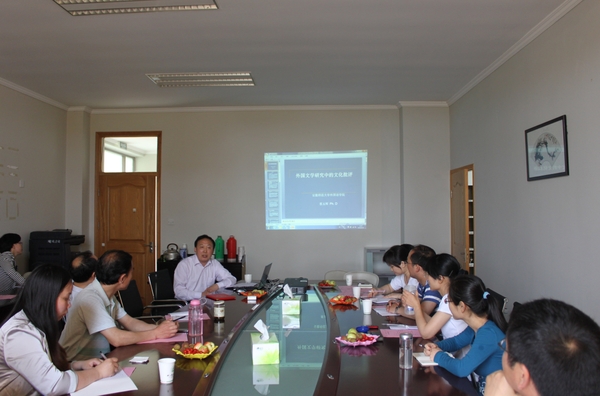 聘任仪式后,蔡玉辉教授为全院教授作了题为《外国文学研究中的文化批评》专题讲座。讲座从文化批评的缘起和流变梳理了英美文学的文化批评理论,以“《沙士比亚的自由》作家与社会现实的关系”、“记忆视角下的《长日留痕》”、“财产关系视角下的《简·爱》”三篇学术研究著作为例,讲述了文化批评理论在作品中运作。蔡玉辉教授语言生动幽默,研究方法新颖,获得教师一致好评。讲座后,吴笛教授、蔡玉辉教授与教师进行了学术交流。