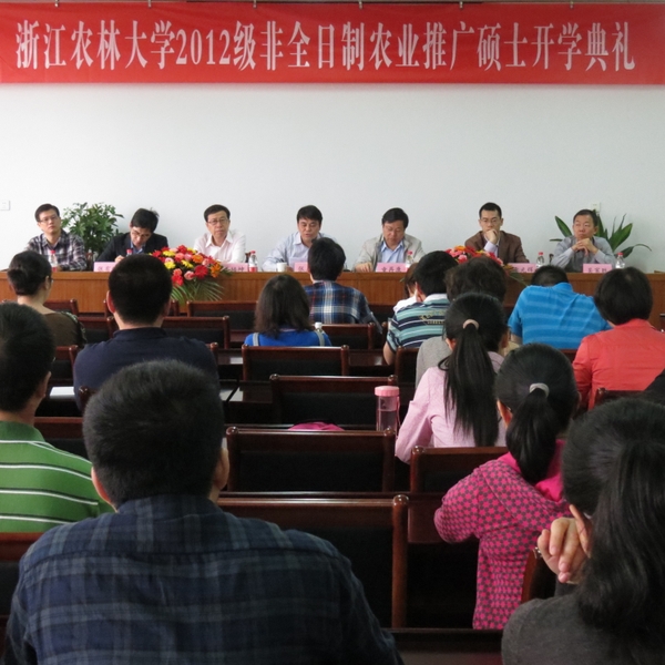 各相关学院负责人、导师代表、研究生秘书,研究生处工作人员和全体2012级非全日制农业推广硕士生参加了典礼。典礼上,导师代表李永夫副教授、老生代表林辉同学、新生代表杨勇同学先后作了发言。