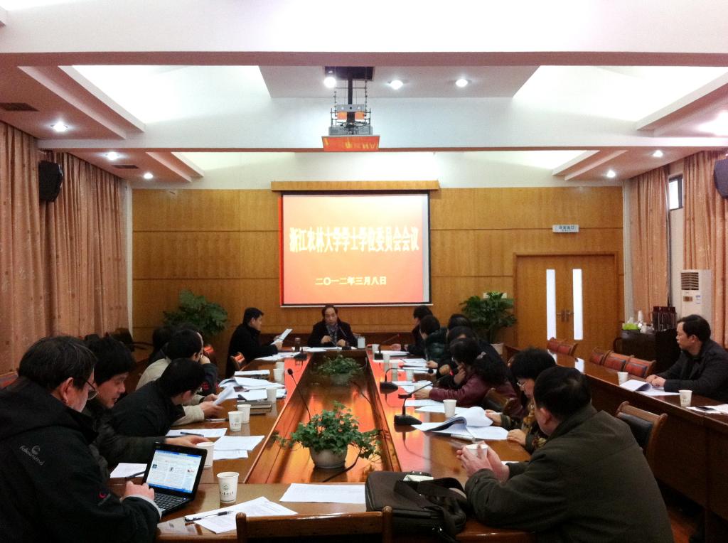 浙农林大新闻网讯 3月8日上午,校长、校学士学位委员会主任周国模主持召开学校学士学位委员会会议,主要听取和审议2012年春季毕业生毕业资格和学士学位资格审查的有关事宜。校学士学位委员会委员出席会议,教务处、天目学院教务部相关负责人列席会议。