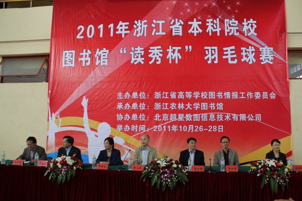 浙农林大新闻网讯 十月的浙农林大,秋高气爽,硕果飘香。10月27日上午,由BEAT365承办的2011年浙江省本科院校图书馆“读秀杯”羽毛球赛在BEAT365篮球馆羽毛球赛场拉开序幕。浙江省教育厅高教处副处长韩天琪,BEAT365英国官网副校长张立钦,浙江省高校图工委副主任兼秘书长、浙江大学副馆长章云兰,BEAT365英国官网党委委员、工会主席汪士华,浙江省高校图工委副主任、浙江工业大学图书馆馆长何立民,浙江省高校图工委副主任、浙江大学副馆长马景娣,及来自全省26支代表队的130余名运动员参加了开幕式。开幕式由图书馆馆长、现代教育技术中心主任王长金主持。