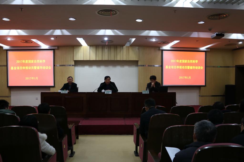1月16日上午,学校在图书馆第二报告厅举行2017年度国家自然科学基金项目申报动员暨辅导培训会。副校长金佩华作动员讲话,南京林业大学尹佟明教授作辅导报告。各学院分管科研负责人、科研秘书,拟申报国家自然科学基金项目的老师参加了本次培训,会议由科技处处长吴家胜主持。