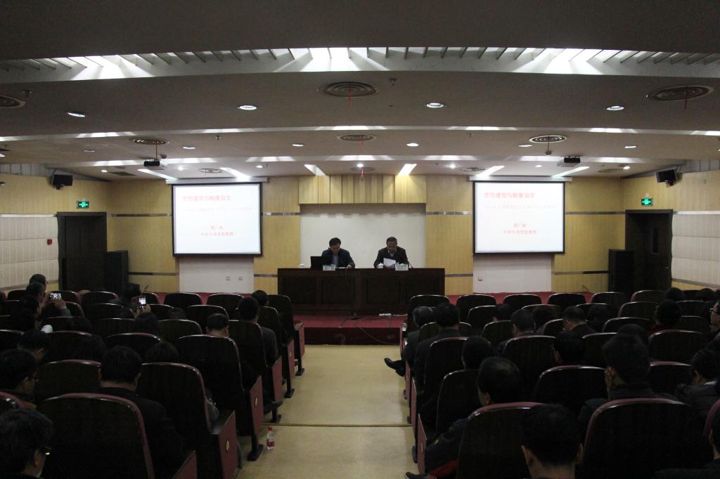3月10日下午,中共中央党校博士生导师、全国中国特色社会主义理论研究会常务副会长、全国毛泽东哲学思想研究会副会长、中国马克思主义哲学史学会常务理事薛广洲教授应邀来校作《思想建党与制度治党——深入理解党的十八届六中全会精神》的专题报告。校党委委员、宣传部部长胡祖吉主持报告会。